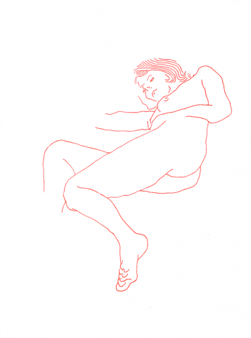 Why does this woman have her lower right arm and her right foot missing ? Two major reasons why this occurs occasionally:The body parts were out of sight (e.g. covered by a blanket).Time's up ! These poses only take about ten minutes, hence if you cannot finish the drawing in time, you stay behind with an unfinished drawing. So why narrowing the time so much then ? It keeps you focussed on the essence of the scene.